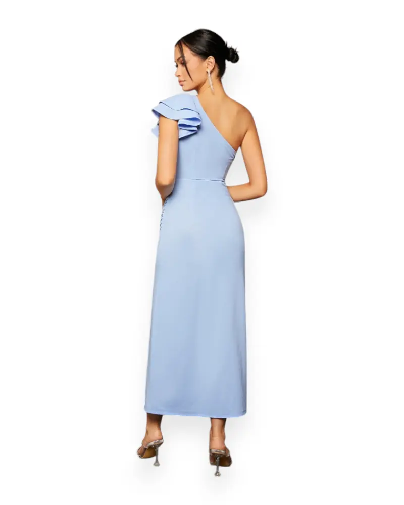 Elegant One-Shoulder Slit Evening Dress (Baby Blue)