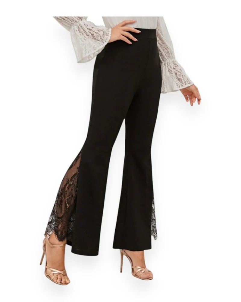 Black Lace Side Flare Pants