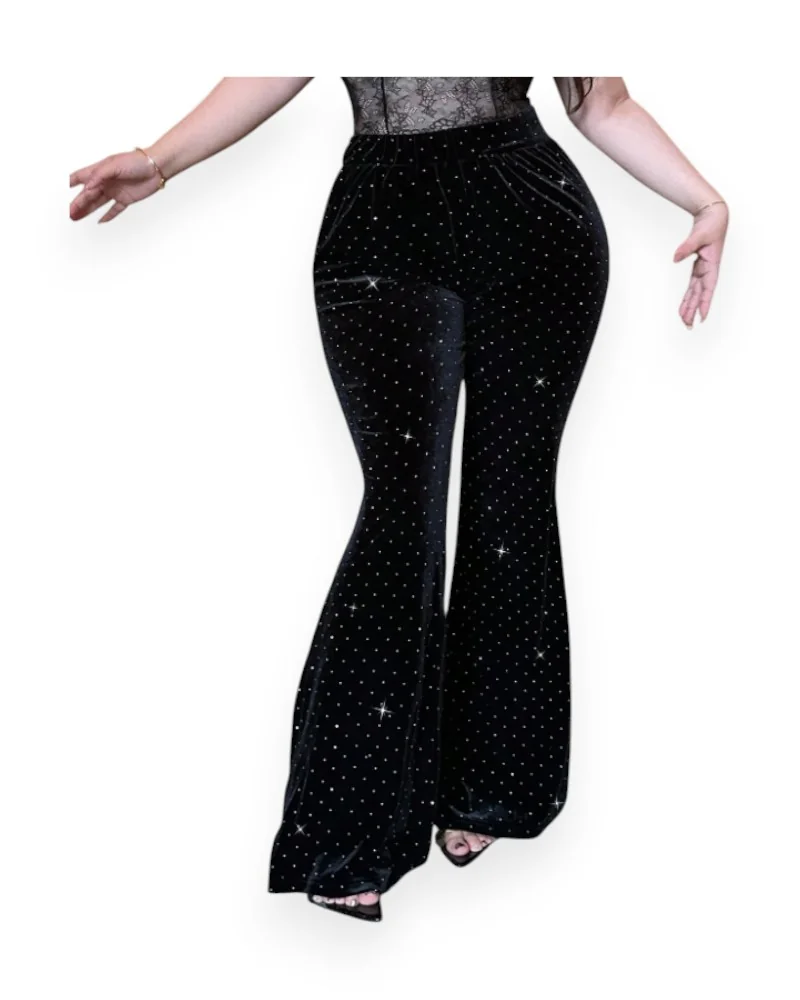 Black Sequin Flare Pants